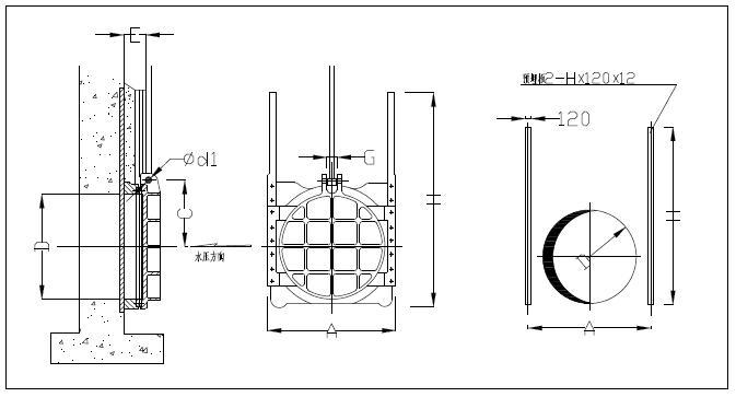 1、閘門(mén)應(yīng)按圖示位置安裝、閘板設(shè)于迎水面;